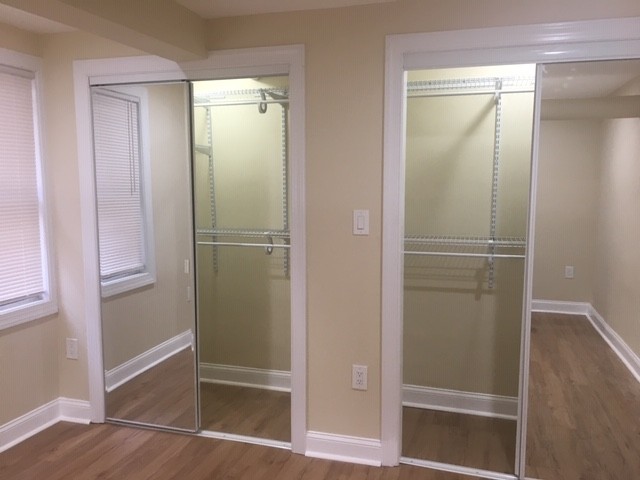 The apartment contains an open concept kitchen / living space with a tall eat in breakfast island with granite countertops and stainless steel appliances. The bedroom is spacious, well illuminated, and contains two ample sized closets/with mirror doors and closet organizers.
