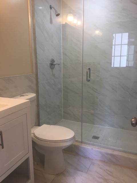 The bathroom is welcoming and modern, the larger format standup shower with frameless shower door and an ample sized vanity and mirror will help you naturally with your daily routine.