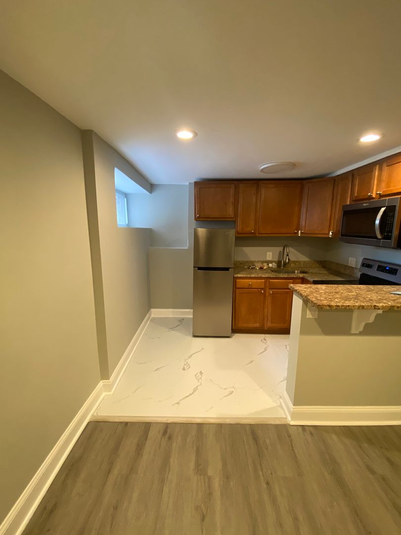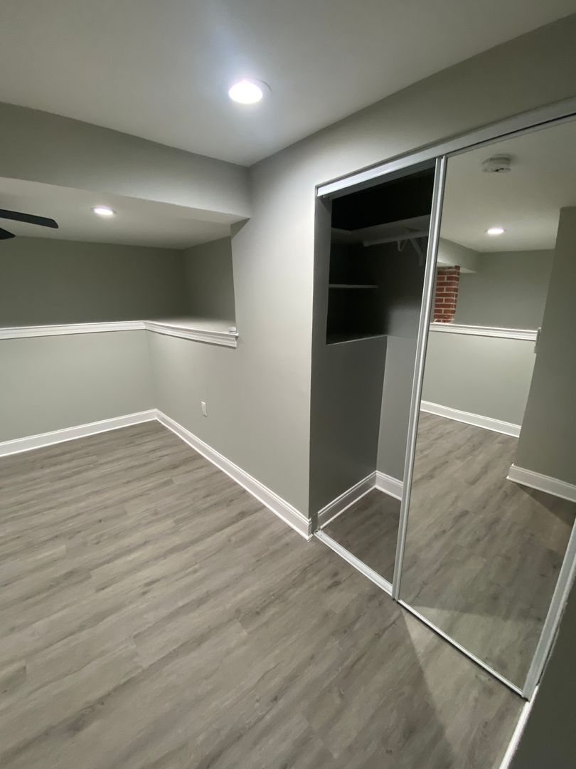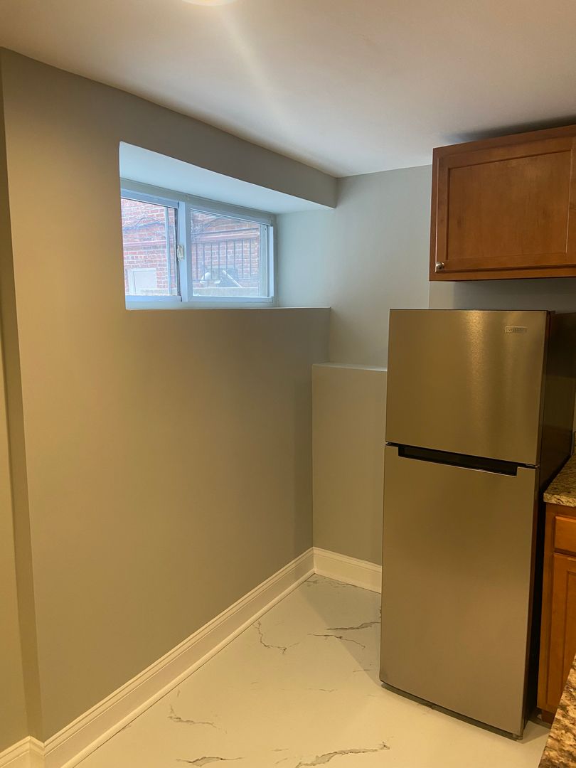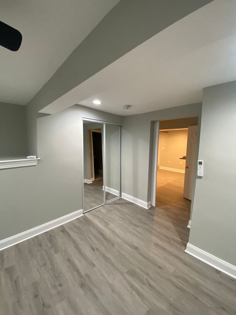 The apartment is situated in the lower level of the building and has natural light that flows into kitchen and living room. With an open concept living area, bedroom and bathroom, this is a great space for one or two people and a small pet to call home. This unit has one closet. Electric and Wi-Fi/cable not included. Bedroom has barn sliding door, new ceiling fans (this unit has 1 window in kitchen area), no window in bedroom! Tours are Monday through Friday from 11-6 in person or virtually.